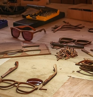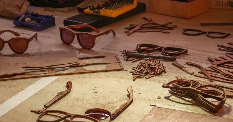 Anteojos de madera con diseño local y natural.